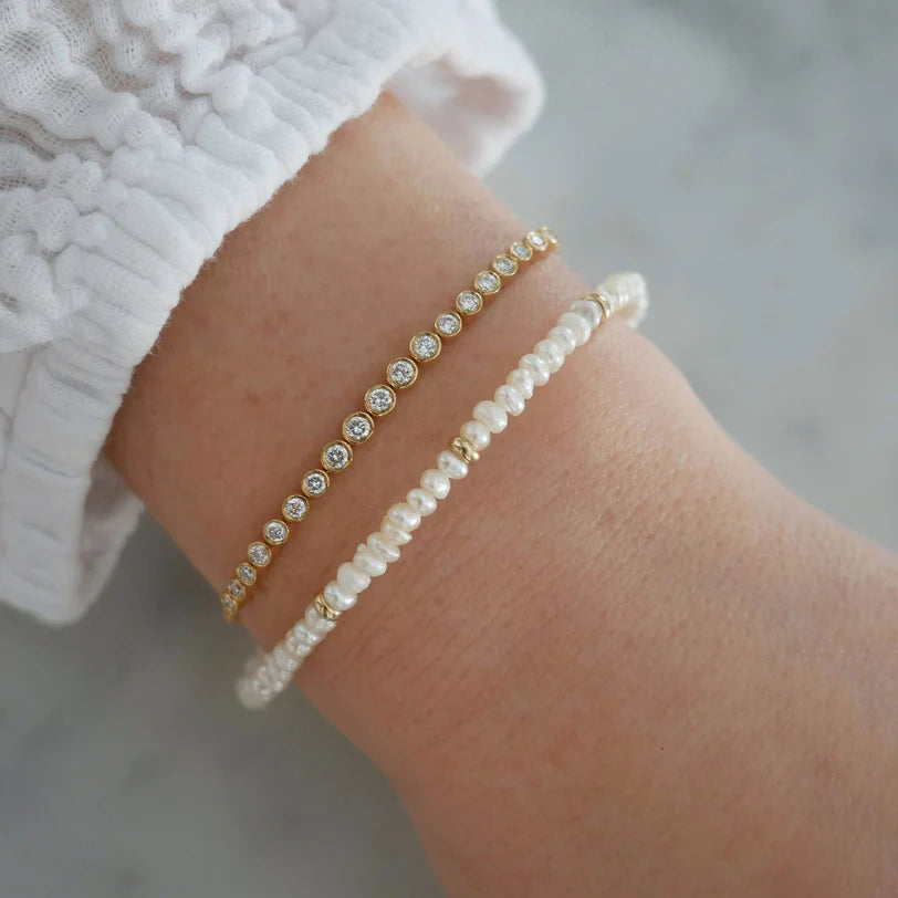 Add a special touch to your look. Our Birthstone Bead Collection styles are crafted with natural stones and three 14k gold rondelles strung on a coated wire for maximum durability. Wear your own birthstone—or a loved one’s—for a meaningful layer in any bracelet stack. Pearl is June's birthstone.