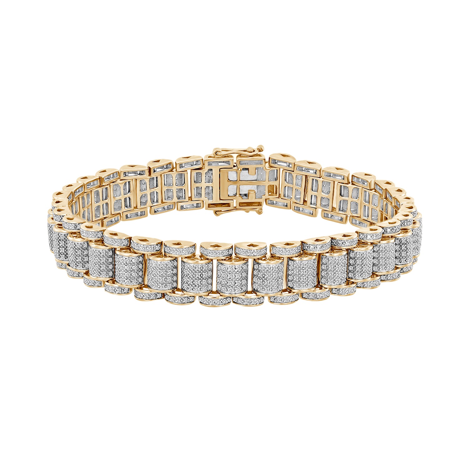 MEN'S BRACELET 2.25CT ROUND DIAMOND 10K YELLOW GOLD