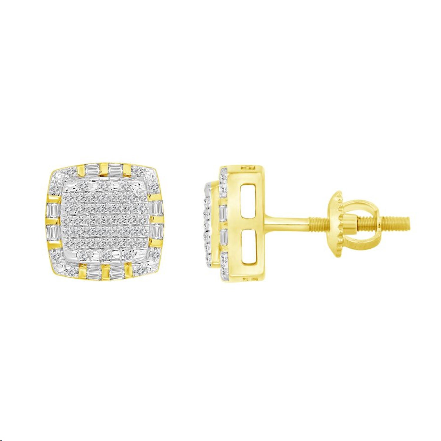 LADIES EARRINGS 0.33CT ROUND/BAGUETTE DIAMOND 10K YELLOW GOLD