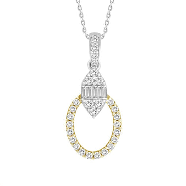 LADIES PENDANT WITH CHAIN 0.25CT ROUND/BAGUETTE DIAMOND 14K YELLOW GOLD