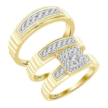 LADIES TRIO SET 0.75CT ROUND DIAMOND 10K YELLOW GOLD