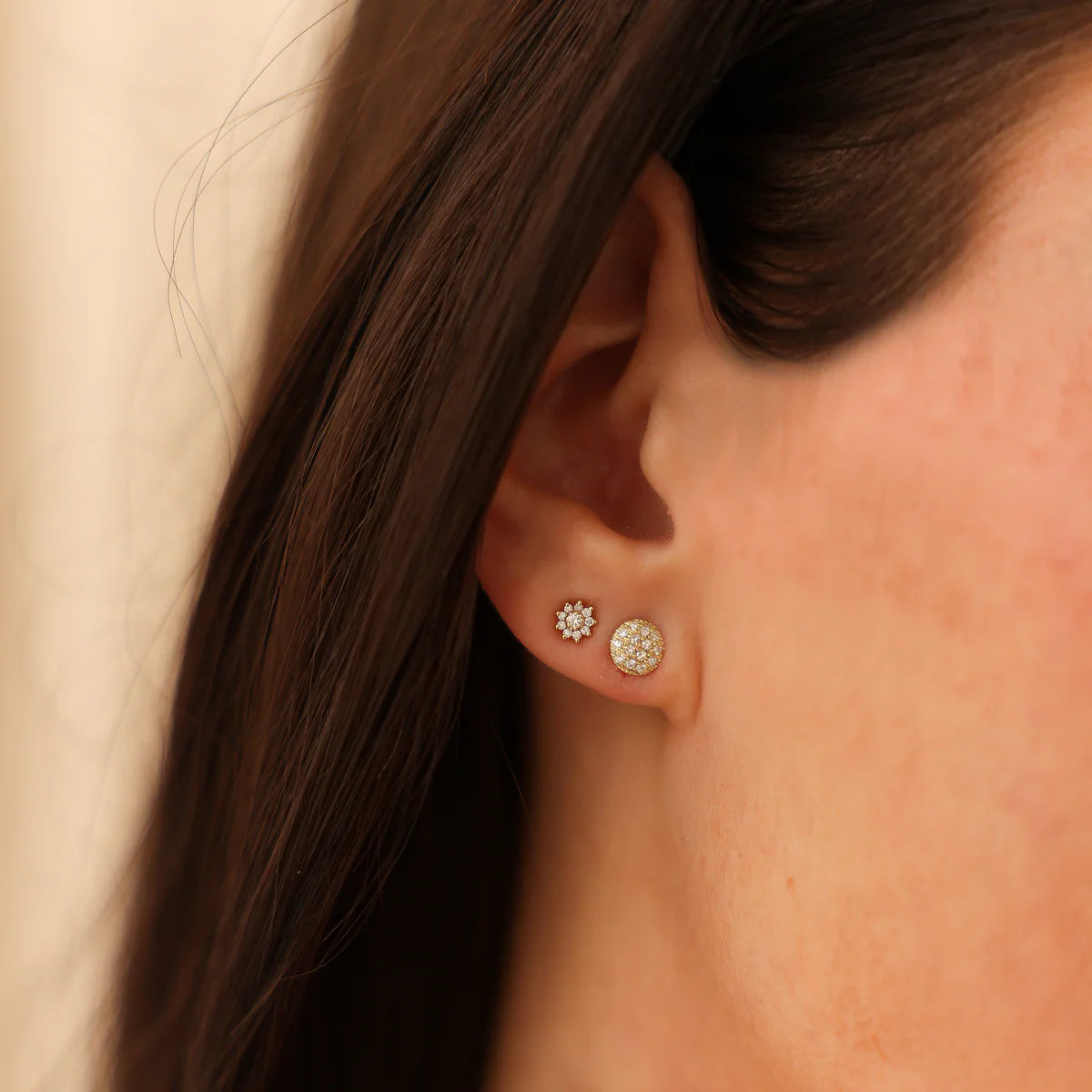 The ultimate dainty and delicate diamond stud earring, these mini disc studs sparkle with pavé set round diamonds. A Dana Rebecca Designs favorite, these studs continue to be a best-seller year after year as they are classic and versatile. An easy everyday earring, they also make the perfect gift. The Lauren Joy Mini Disc Studs are perfect for both the minimalist, who will love to wear them solo for a classic look, and also the maximalist, who will pair them with their DRD collection for an edgy stack.