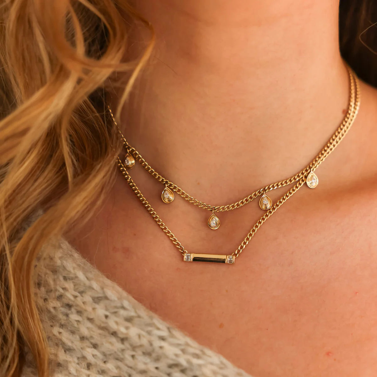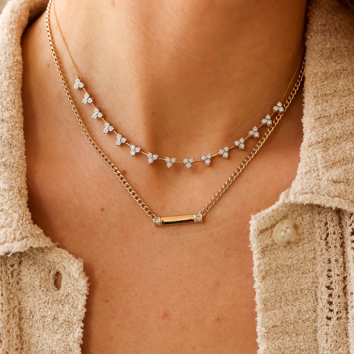 Say hello to the ultimate in everyday elegance. The Sadie Pearl Cuban Chain Bar Necklace, crafted in glowing 14k gold, features 0.17 carats of diamonds set in a sleek, minimalist bar design. The Cuban chain adds a touch of boldness, while the diamonds bring just the right amount of sparkle to elevate any look. With a secure lobster clasp, this necklace is as easy to wear as it is to adore. Whether you’re keeping it casual or dressing it up, it’s the perfect piece to add a little dazzle to your day-to-day. Simple, stunning, and totally wearable—this is your go-to necklace for effortless luxury.