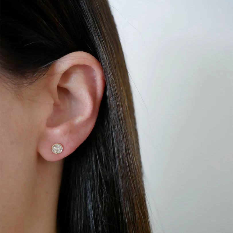 The Diamond Mini Disc Stud Earrings are the little sisters to the Diamond Disc Stud Earrings with a disc diameter of 6 mm. Featuring .14 carats of pavé diamond, these earrings round out any look.