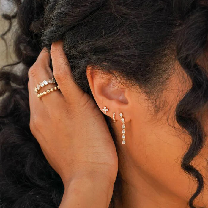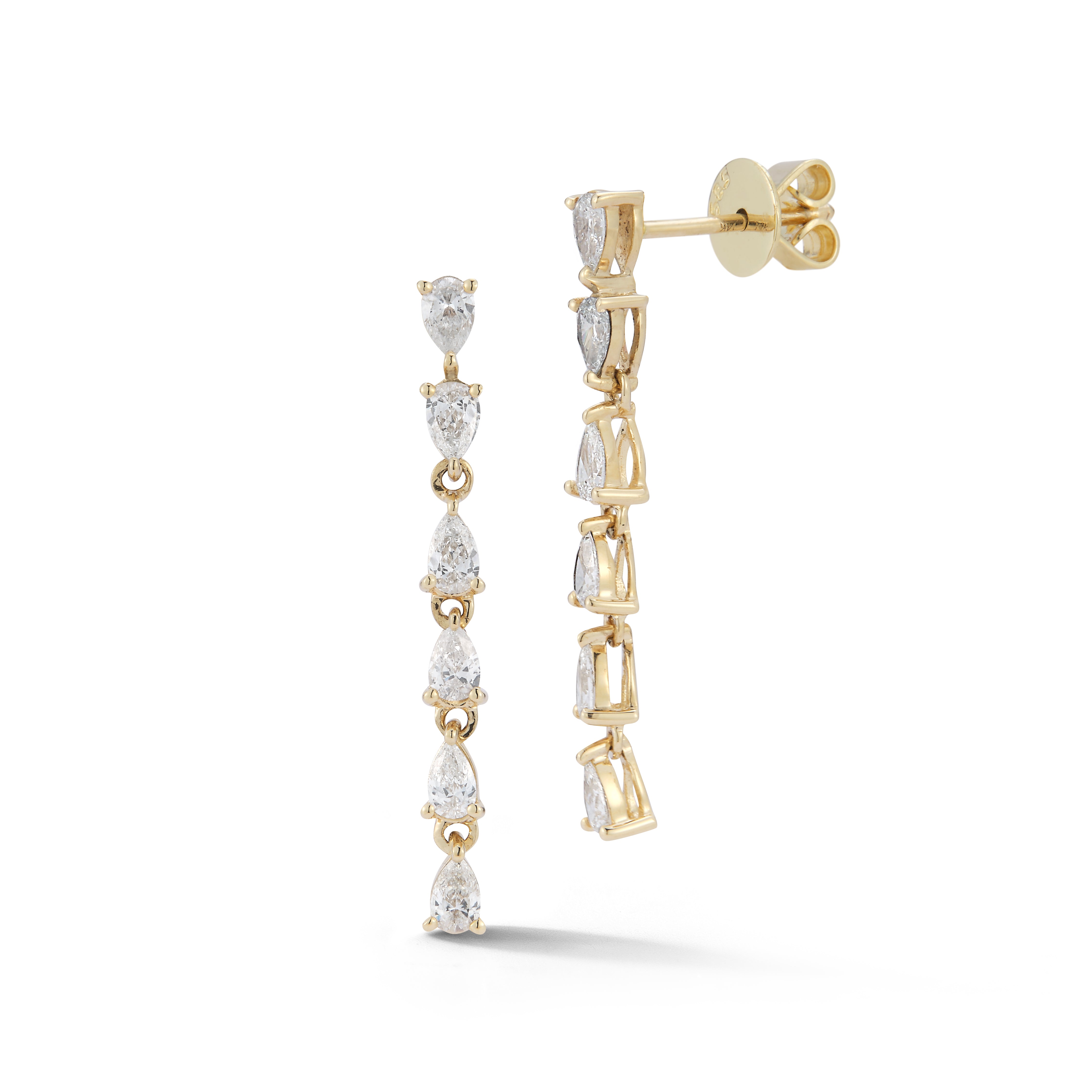 The DRD Vertical Pear Drop Stud Earrings by Dana Rebecca Designs bring a graceful touch of movement and light to your everyday style. Handcrafted in 14K yellow gold and adorned with .45 carats of round brilliant diamonds, their delicate linear silhouette elongates the ear with understated sparkle. Elegant on their own or layered with studs, they’re the perfect finishing touch for any occasion.