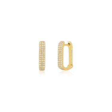 The Diamond Jumbo Lola Hoop earring brings effortless style to any look. Sparkling with three rows of pavé diamonds, this earring is the extra glittery sister to the Diamond Lola Hoop Earring. In the mood for more? Treat yourself to the diamond baguette version.