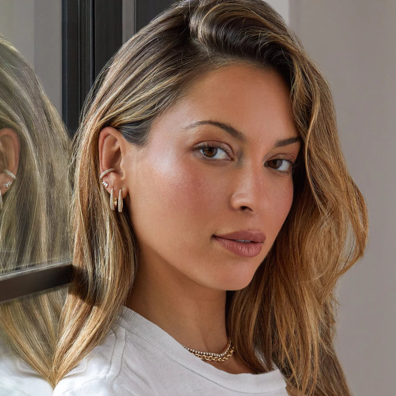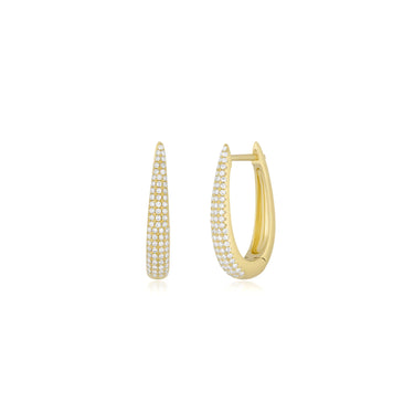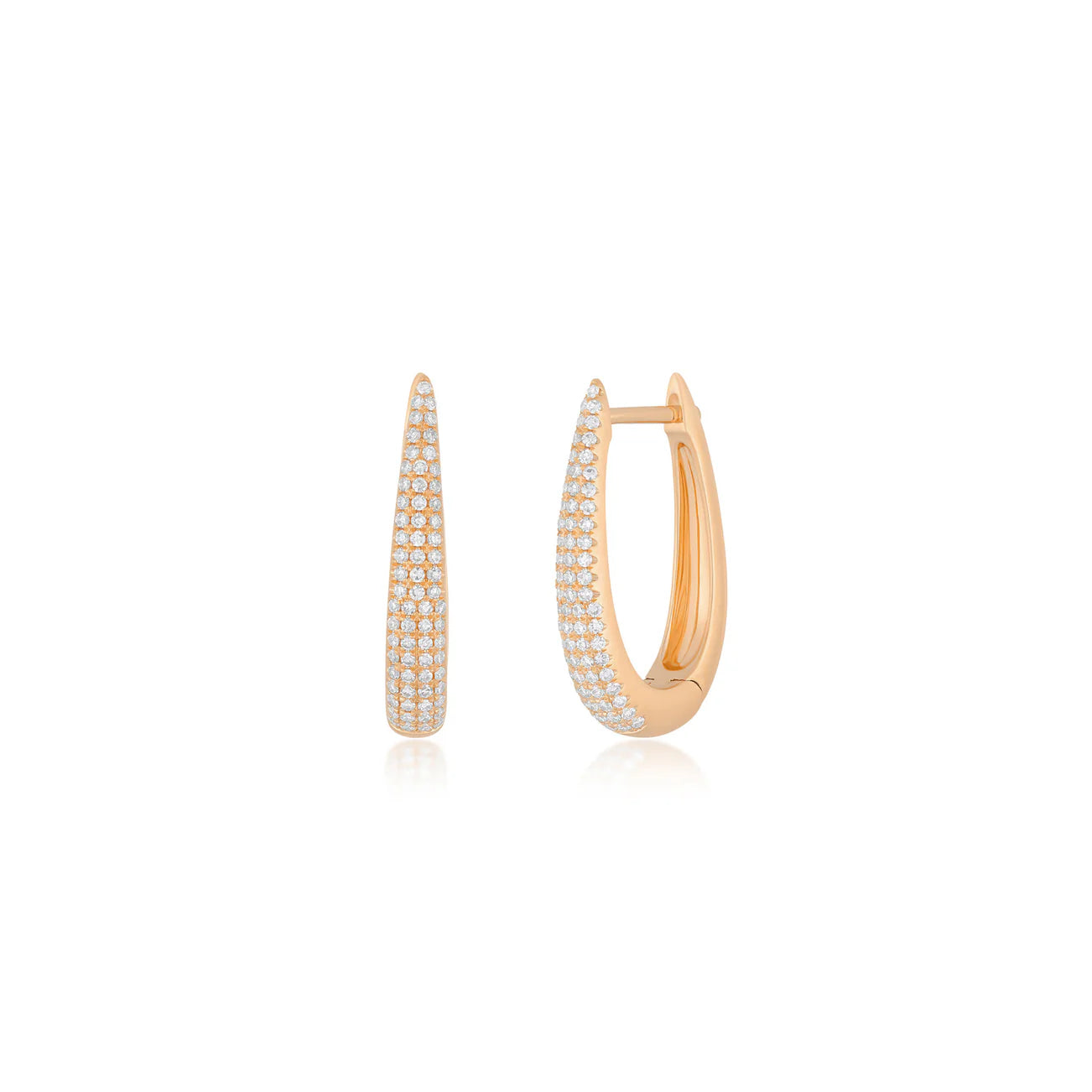 The Diamond Maeve Hoop Earrings add a touch of edge to any look. Crafted in a bold teardrop shape with pave diamonds, we reimagined the classic hoop in a new silhouette designed to reflect light and shine from every angle.