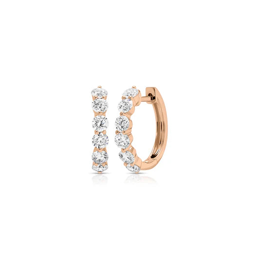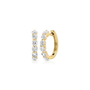 The Jumbo Prong Set Diamond Hoop Earrings are the big sister to the Jumbo Prong Set Graduated Diamond Huggie. Sparkling with six diamonds set in prongs for a classic finish, these hoops are your new daily diamond essential.