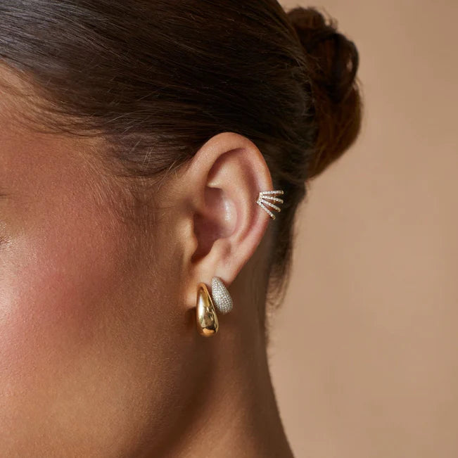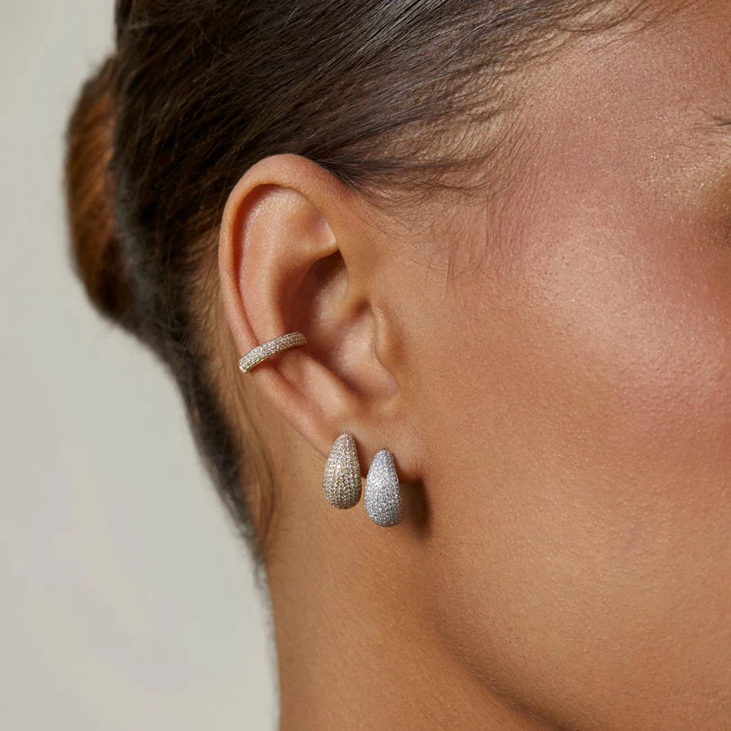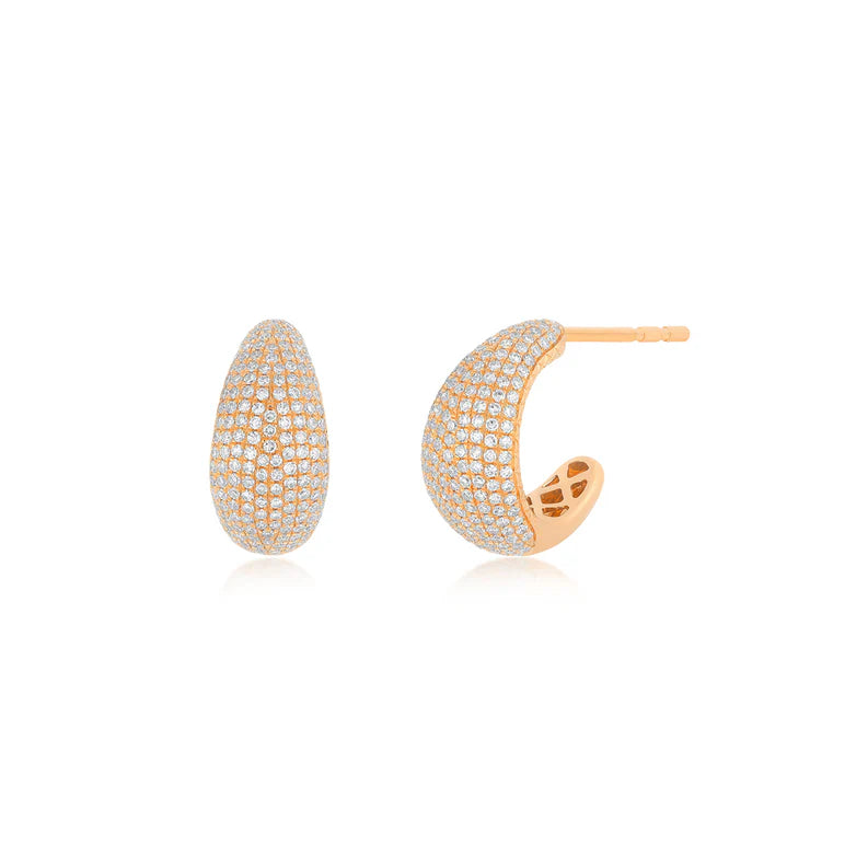 The Pavé Diamond Jumbo Dome Huggie Earrings are the newest addition to our Dome family. Designed to be your new favorite earrings, these sculptural stunners feature pavé diamonds for maximum sparkle. Welcome to the daily earring rotation.