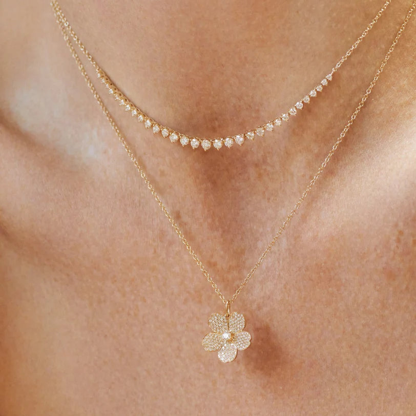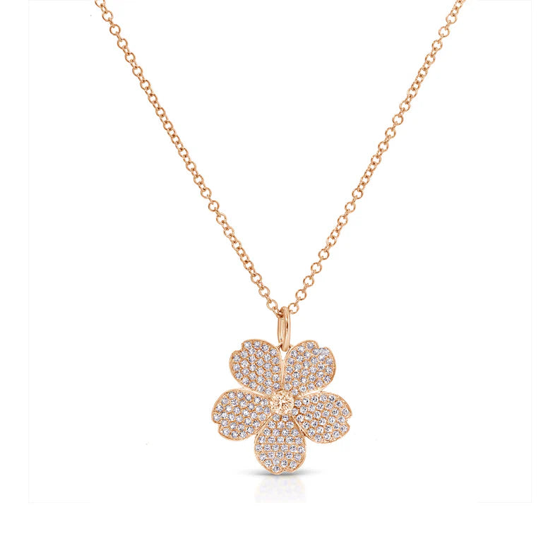 The Diamond Cherry Blossom Necklace blooms with style. Each petal is set with shimmering pave diamonds, with a round diamond at the center of the flower. Known to symbolize renewal, cherry blossoms are one of our favorite ways to celebrate new beginnings.