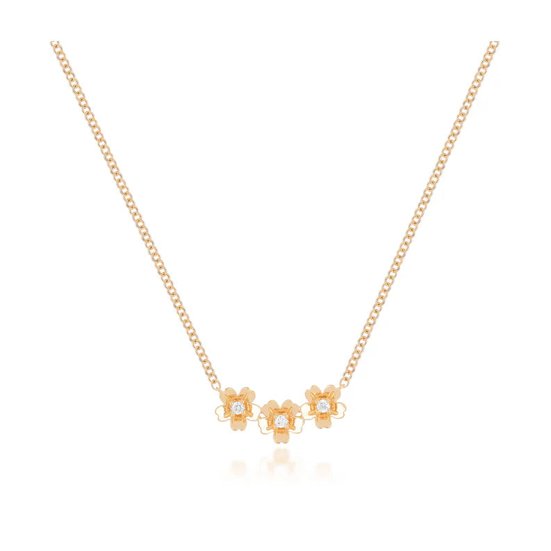 EF-Collection Triple Gold and Diamond Mini Cherry Blossom Necklace