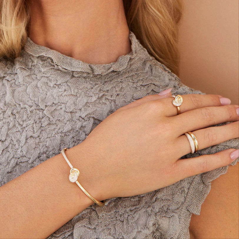 The Diamond & Gold Jumbo Love Knot Bangle Bracelet celebrates connection. After years of perfecting each detail, the Love Knot collection marks the milestone of our founder’s 5th wedding anniversary. Crafted with classic solid gold and pavé diamonds meeting in a knot design, this special bangle symbolizes life’s most meaningful bond.