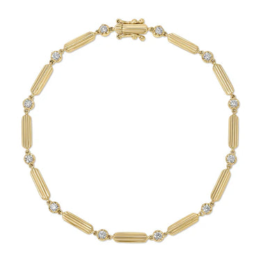 This eternity bracelet encircles the wrist in texture and sparkle, featuring fluted gold bars and diamonds in bold crown settings. Finished with a secure box clasp, it's designed to be a daily staple.
