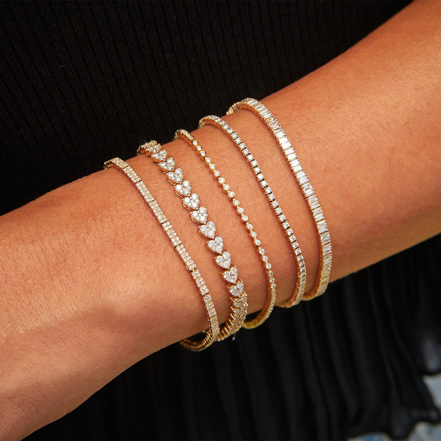 The Double Row Diamond Eternity Bracelet shows that twice the diamonds is always a good idea. Featuring movable links encrusted in pavé diamond, this eternity bracelet wraps the wrist beautifully.