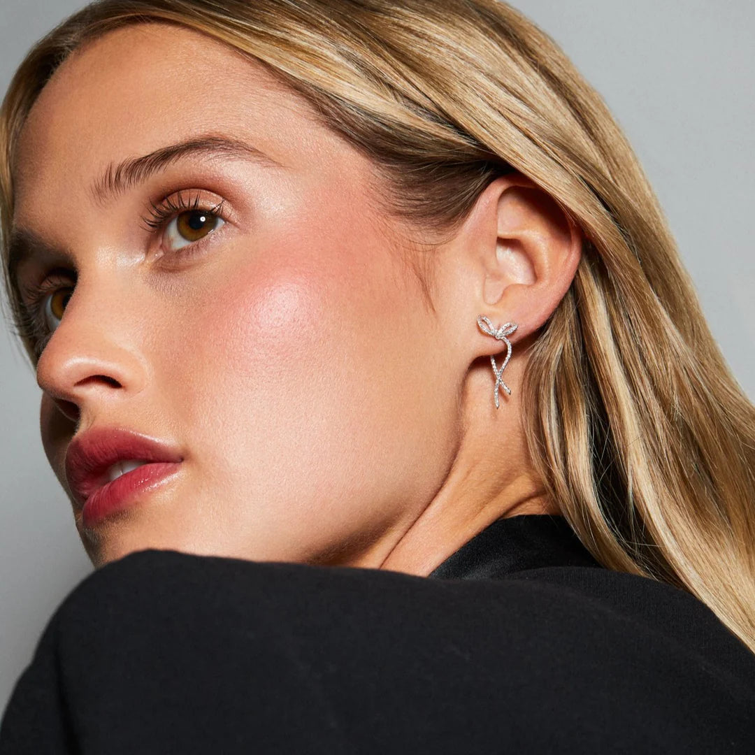 The Diamond Bow Earrings are like a present for your ear. Featuring .34 carats of diamond that appears to weave through the ear thanks to creative construction, this pretty pair will get you all wrapped up.