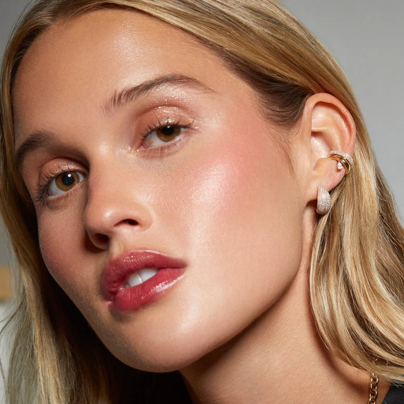 The Diamond Pear Drop Gold Ear Cuff is the perfect mix of classic and fun. Designed in bold gold with a single pear diamond drop, this comfortable cuff features a hinge for mid-ear wear—no piercing required.