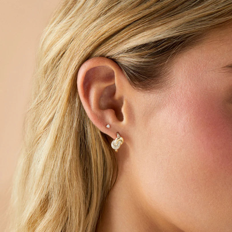 The Diamond & Gold Love Knot Stud Earrings celebrate connection. After years of perfecting each detail, the Love Knot collection marks the milestone of our founder’s 5th wedding anniversary. Crafted with classic solid gold and pavé diamonds meeting in a knot design, these special studs symbolize life’s most meaningful bond.