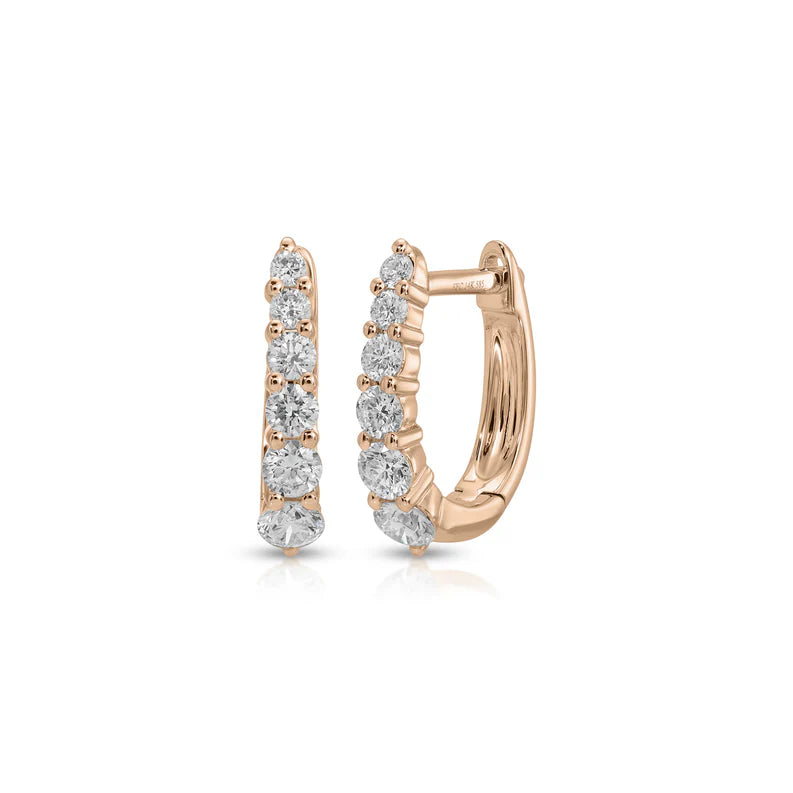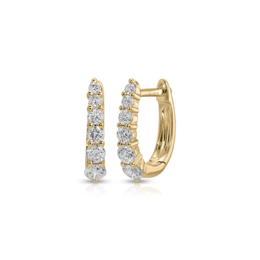 A sparkly yet mini take on our beloved teardrop hoop, this style features prong-set diamonds that graduate in size. Whether you're dressing up or keeping it casual, our mini Maeve huggies prove that true classics are always in season.