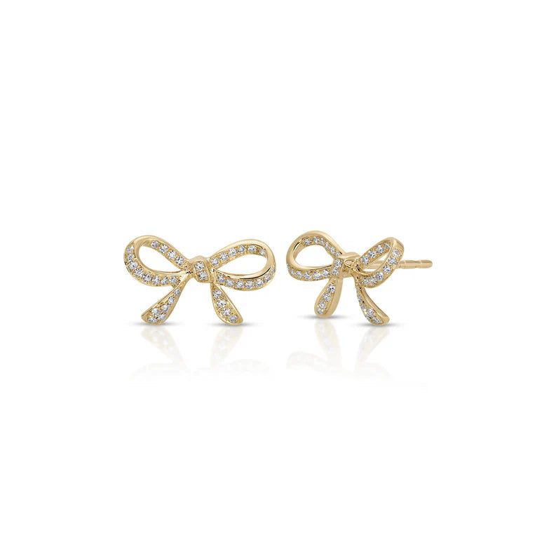 These dimensional bow studs are gracefully sculpted and hand-set with pavé diamonds. Playful yet sophisticated, they're designed to tie together any outfit.