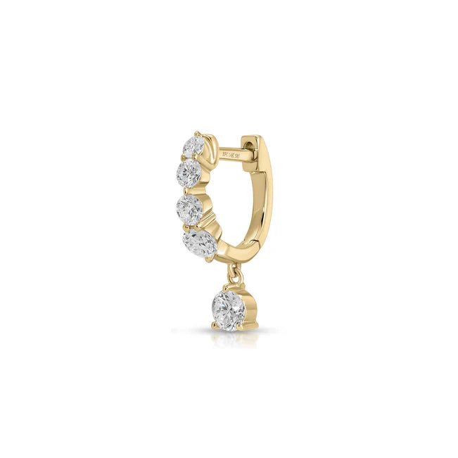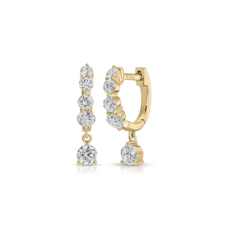 An update to our best-selling graduated diamond huggies, these earrings feature prong-set diamonds that gracefully increase in size and are finished with a brilliant diamond drop. Effortlessly versatile, they add the perfect touch of sparkle to both your everyday and special occasion looks.