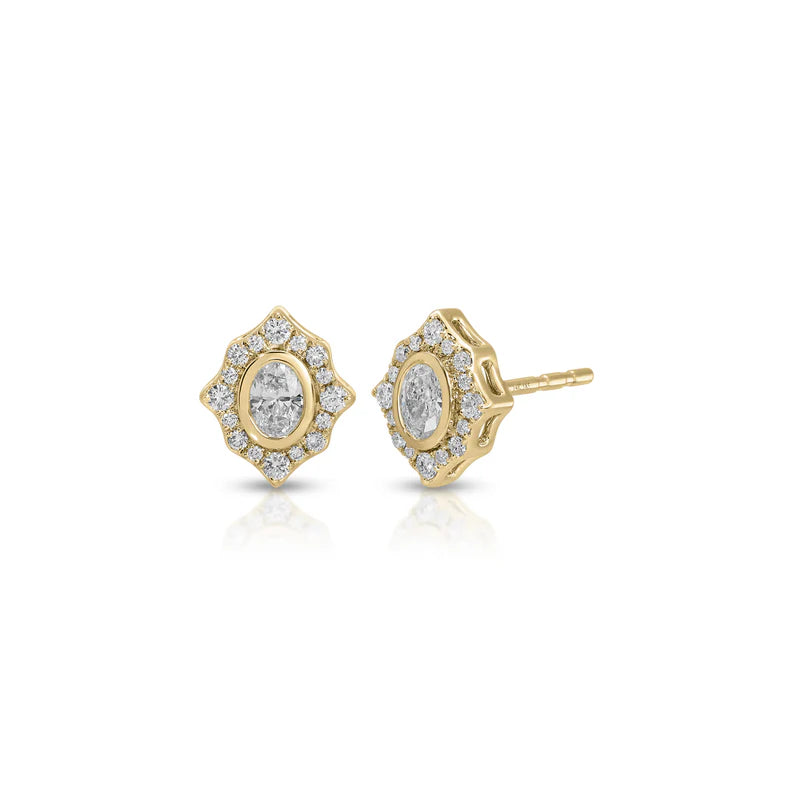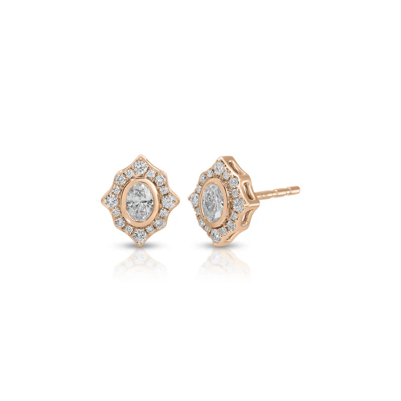 These stud earrings showcase an oval diamond framed by a halo of graduated diamonds. With just the right amount of shine for any occasion, these studs will be your new go-to pair.