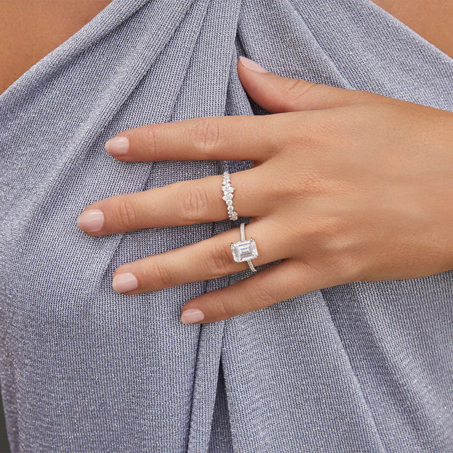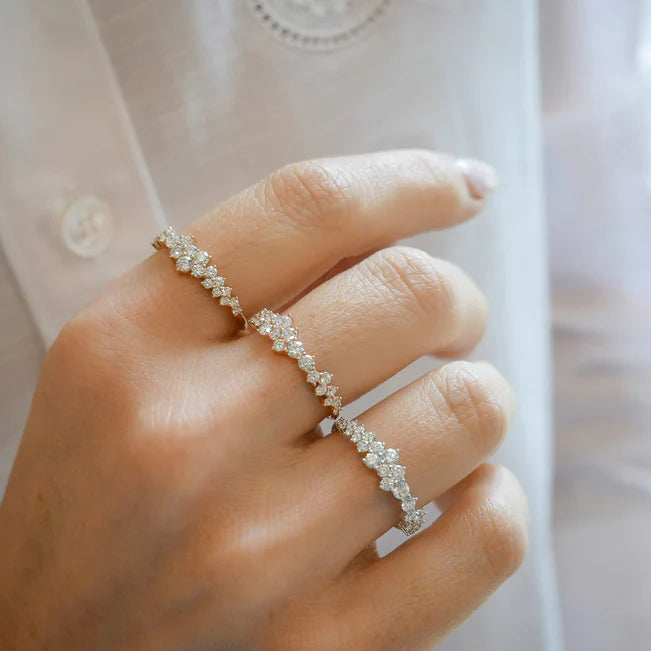 The Diamond Cluster Ring is like wearing a constellation on your finger. Featuring 23 diamonds set in an asymmetric grouping along half of the band, this style adds a twinkle to any stack.