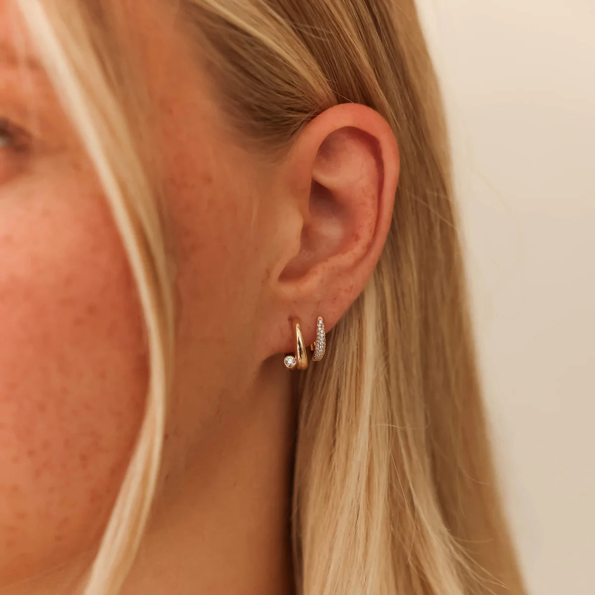 Crafted in luxe 14K gold and anchored by 0.13 ct. of diamonds, these hoops remix the classic silhouette with a sleek bypass twist. They’re modern-edge meets timeless charm—light enough for every day, polished enough for every evening. Effortless without trying too hard. Elegant with an unexpected wink.