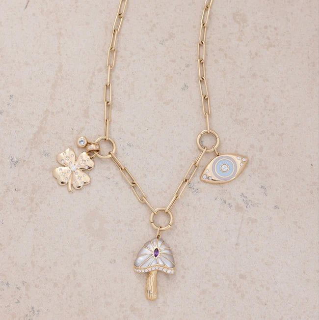 The Lola Triple Enhanced Chain Necklace can be personalized to tell your own unique story. This special style includes three seamless enhancers that all hinge open, allowing you to easil add charms over time. This necklace can accommodate multiple charms.