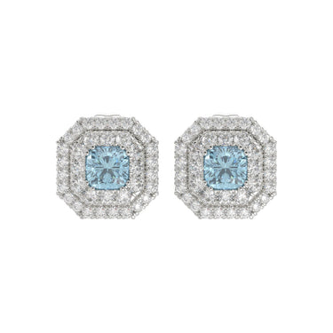 14K WHITE GOLD CRAFTED WITH 18K YELLOW GOLD BACK PLATE 1 1/2CT ROUND/BLUE CUSHION DIAMOND LADIES EARRINGS