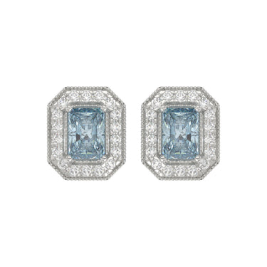 14K WHITE GOLD CRAFTED WITH 18K YELLOW GOLD BACK PLATE 1 1/4CT ROUND/BLUE EMERALD DIAMOND LADIES EARRINGS