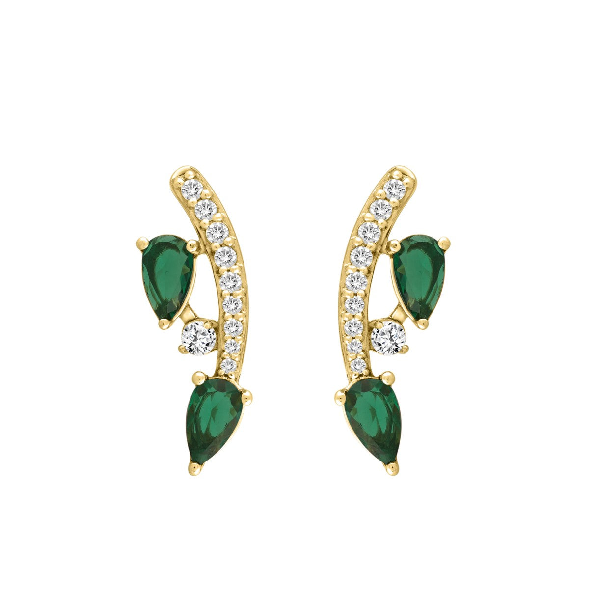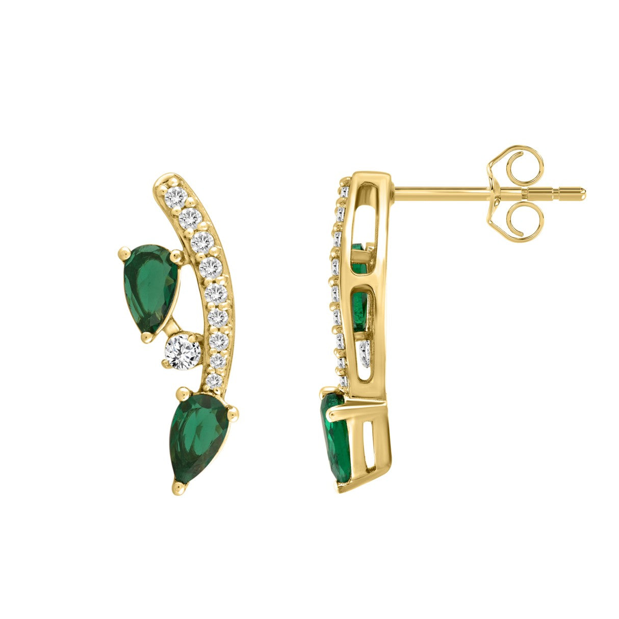 14K YELLOW GOLD 1.00CT ROUND/PEAR DIAMOND LADIES EARRINGS (PEAR EMERALD DIAMOND 7/8CT)