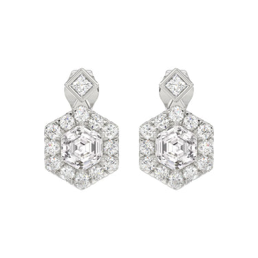 14KWHITE GOLD 2 1/4CT ROUND/HEXAGON STEP CUT DIAMOND LADIES EARRINGS