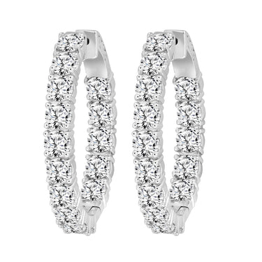 LADIES HOOP EARRINGS 9CT ROUND DIAMOND 14K WHITE GOLD
