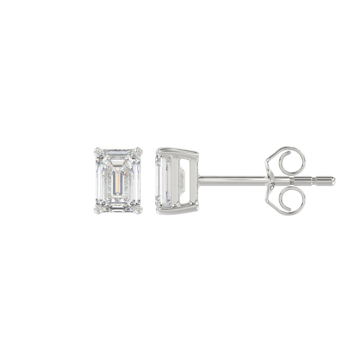 LADIES SOLITAIRE EARRINGS 1/2CT EMERALD DIAMOND 14K WHITE GOLD