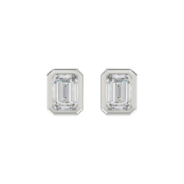 LADIES SOLITAIRE EARRINGS 3CT EMERALD DIAMOND 14K WHITE GOLD
