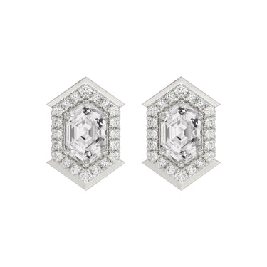14K WHITE GOLD 1 1/4CT ROUND/HEXAGON DIAMOND LADIES EARRINGS