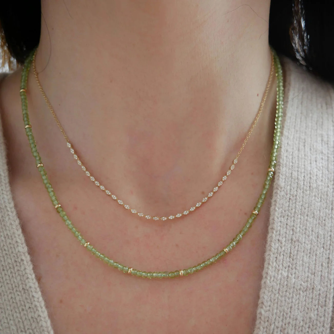 EF-Collection Birthstone Bead Necklace In Peridot