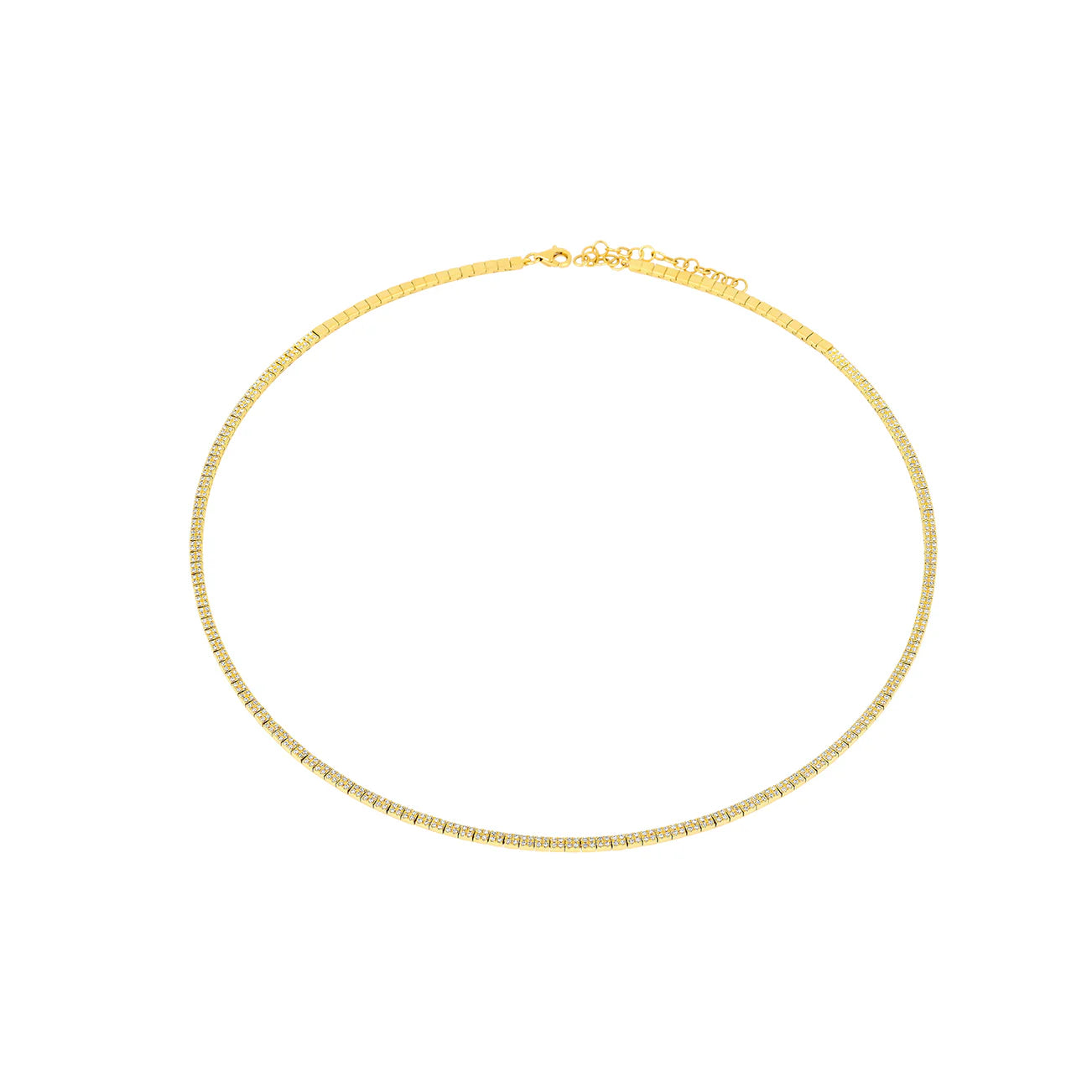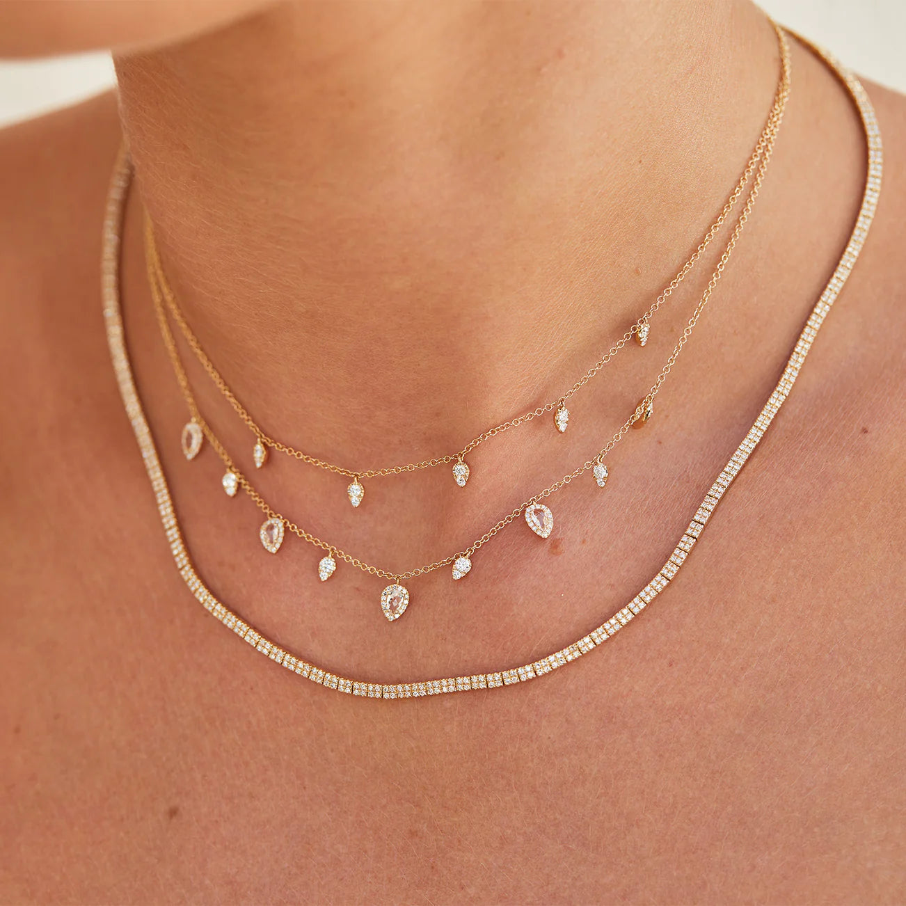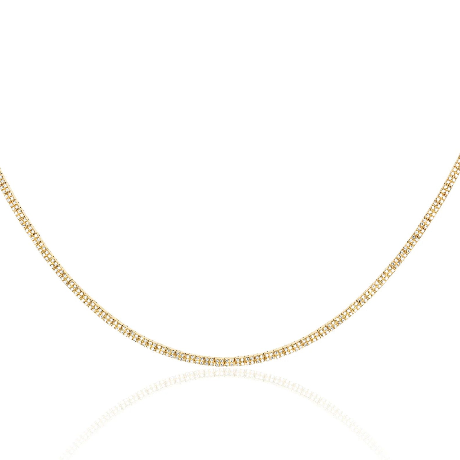 The Diamond Margo Necklace is encircles the neck beautifully with two rows of pavé diamonds, totaling 1.27 carats. Set in your choice of 14k yellow, white, or rose gold, this special piece was designed to sparkle.