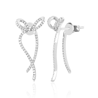 The Diamond Bow Earrings are like a present for your ear. Featuring .34 carats of diamond that appears to weave through the ear thanks to creative construction, this pretty pair will get you all wrapped up.