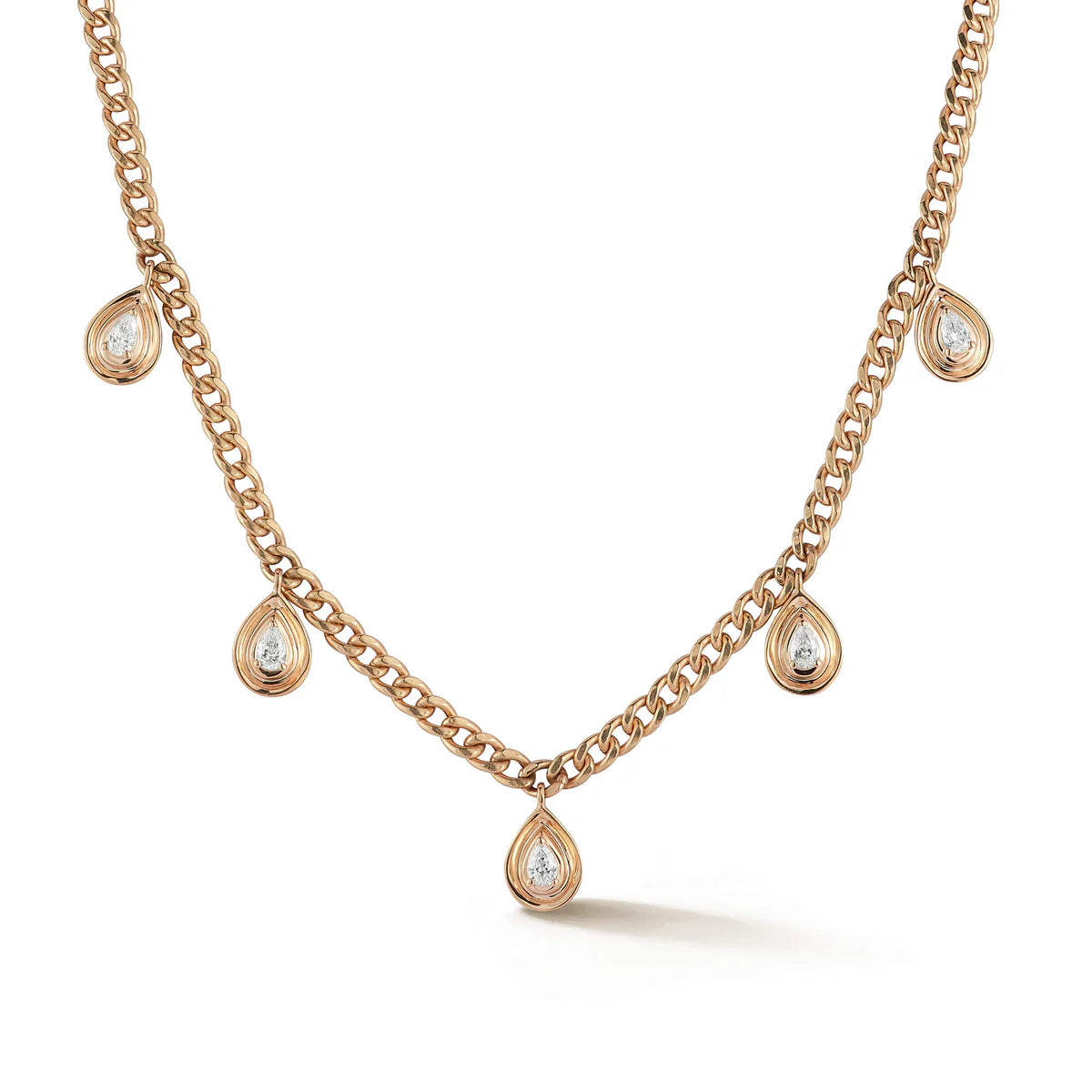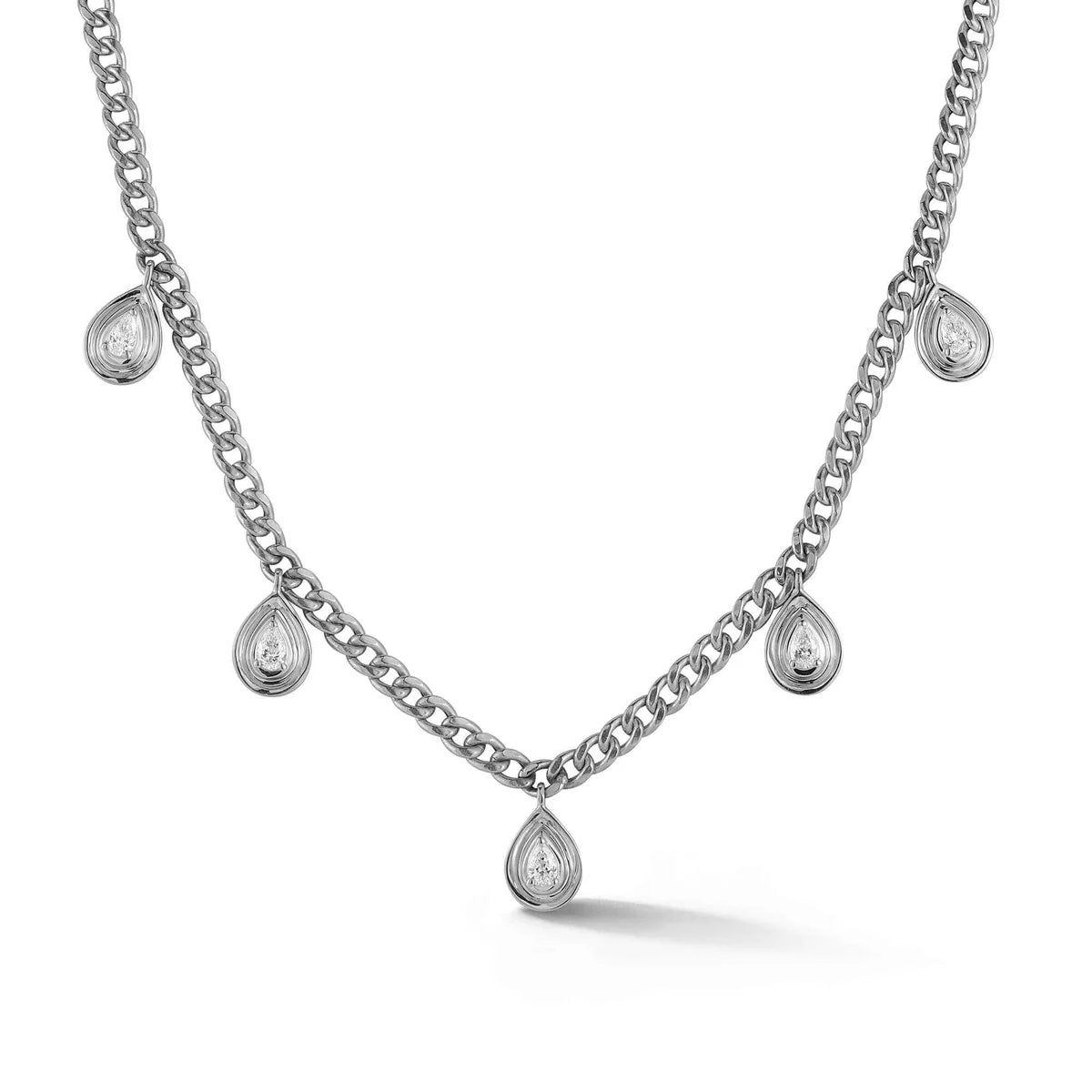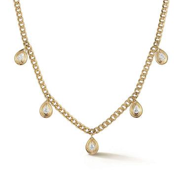 This isn’t just any chain necklace—it’s a bold, glamorous piece that demands attention. The Nana Bernice Cuban Chain Station Necklace, crafted in radiant 14k gold, features 0.33 carats of diamonds set against five striking pear-shaped stations. With its chunky Cuban chain and those eye-catching pear stations, this necklace exudes both luxury and edge. The lobster clasp makes it easy to wear and ensures it stays in place. It’s a necklace that adds a vibrant, dazzling touch to any outfit—perfect for making a statement while still keeping it effortlessly chic.