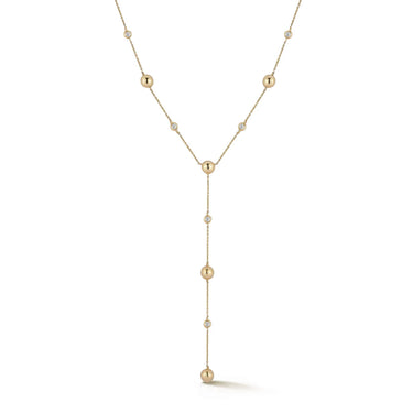 A sleek 14K gold chain adorned with our signature pebble stations and 0.19 ct of diamonds—this lariat necklace is your new go-to for effortless elegance. Wear it open for a minimalist vibe or tie it up for a touch of drama.
