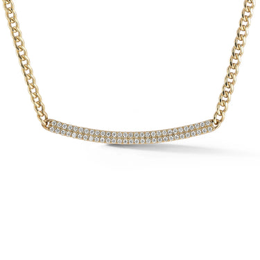 The Sylvie Rose Cuban Chain Long Bar Necklace is for lovers of all things extra. We’ve taken one of our most coveted bar necklace styles and added even more glam with a solid, 14K gold Cuban chain. The elongated, delicate pave-set diamonds on a slightly curved bar results in an ultra-flattering shape with a sense of movement. The long bar is one of our most coveted styles, as it stuns on its own and also pairs beautifully with the rest of your collection for an enviable necklace stack. Layer this diamond bar necklace with other Dana Rebecca Designs classics for a dripping-in-diamonds look. Available in 14k white, yellow, and rose gold.