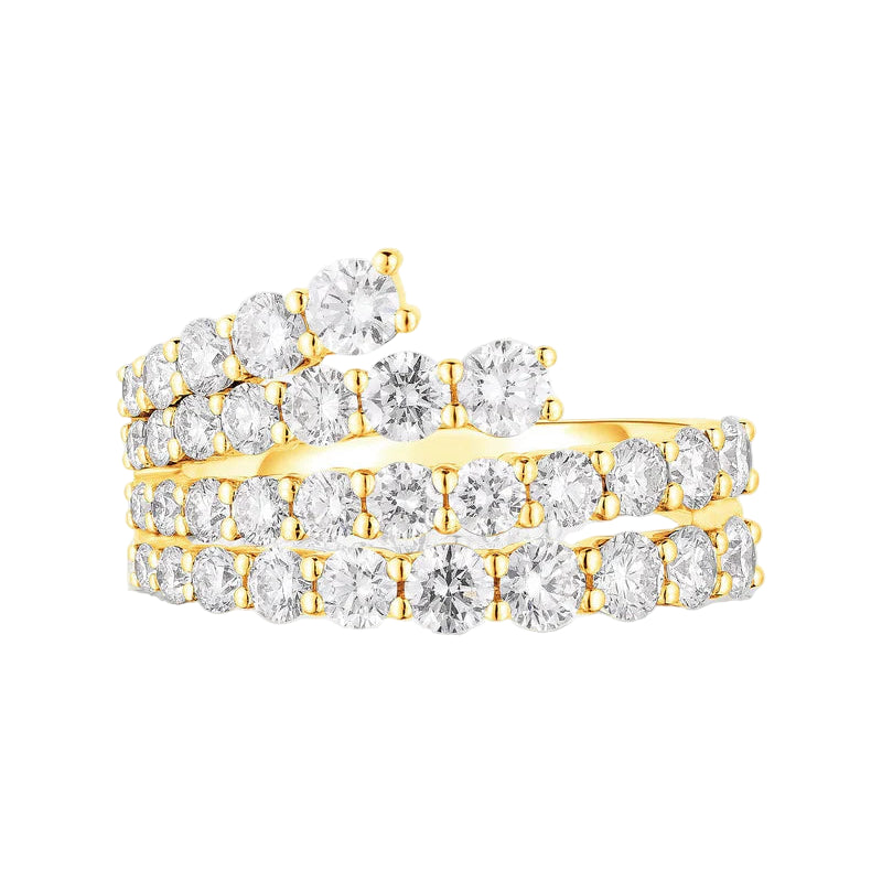 A bold expression of elegance, the Susana Fanned Lab-Diamond Statement Ring is designed for the woman who shines with quiet confidence. Crafted in 14k gold and set with 1.79cts of brilliant round-cut lab-grown diamonds, this multi-row fan design delivers captivating sparkle from every angle.