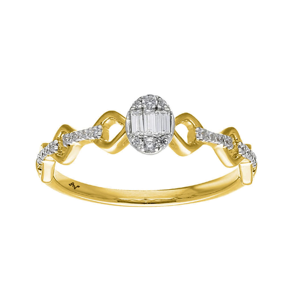 LADIES RING 0.15CT ROUND/BAGUETTE DIAMOND 14K YELLOW GOLD