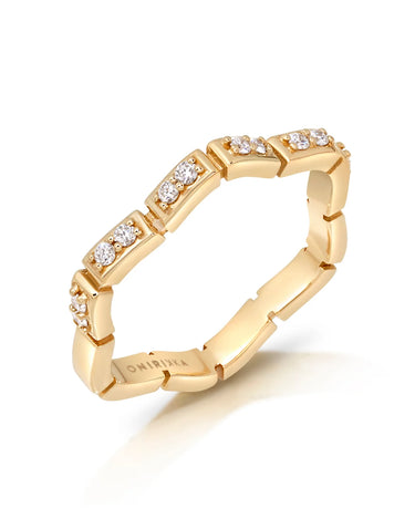 Refined and radiant, the Glimmer Wave Diamond Ring by Onirikka adds effortless sparkle to your everyday. Handcrafted in 18k yellow gold and set with 0.18 carats of brilliant diamonds, this sculptural design brings a modern rhythm to a timeless gold band.