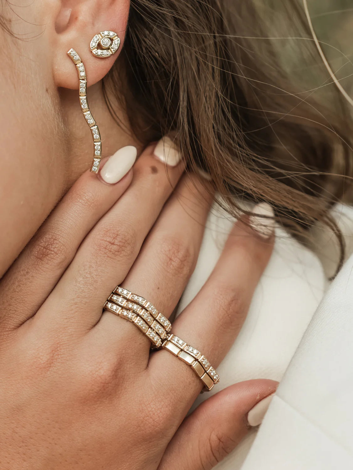 Perfect on its own or stacked with others, the Glimmer Wave Ring is a versatile piece that embodies Onirikka’s balance of bold geometry and delicate elegance — a jewelry essential made to shine every day.