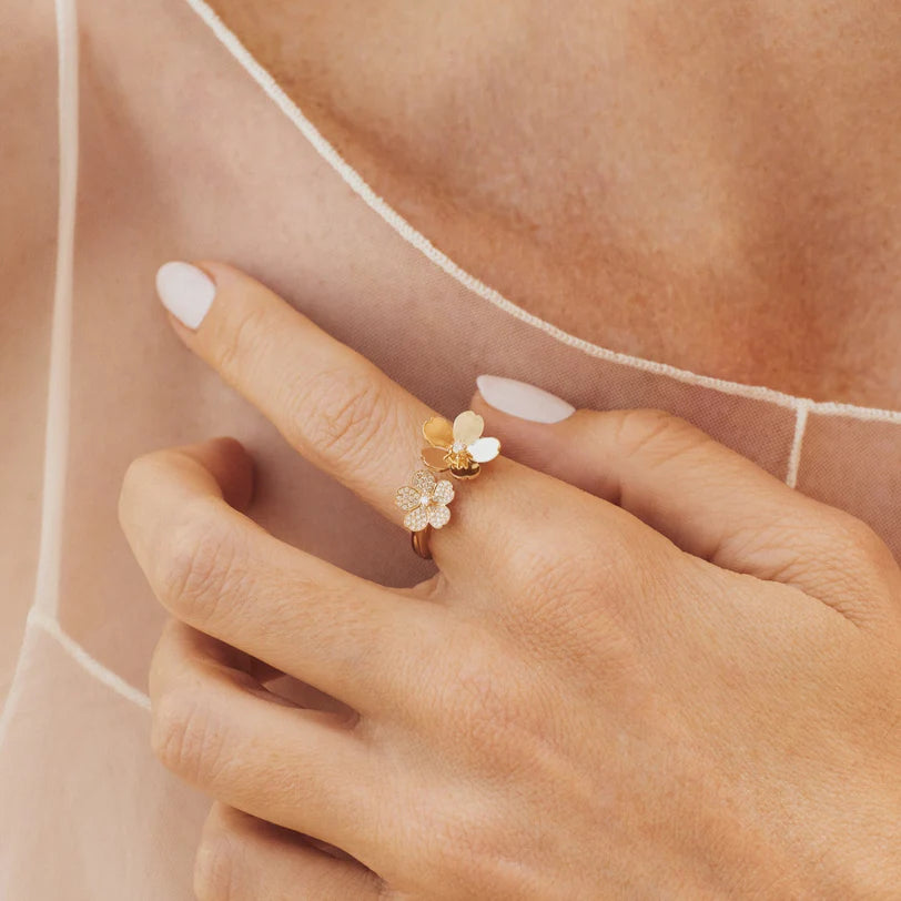 EF-Collection Diamond and Gold Double Cherry Blossom Ring