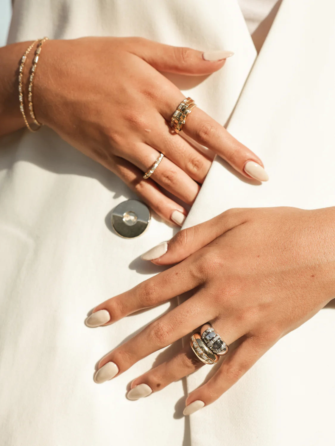 A perfect balance between bold form and delicate sparkle, this statement ring embodies Onirikka’s signature craftsmanship and timeless elegance.
