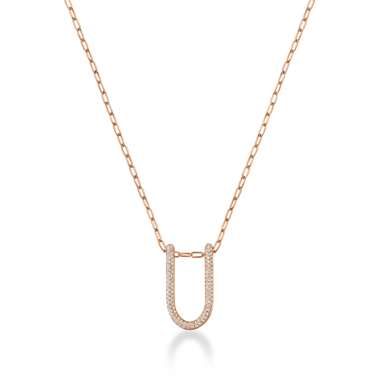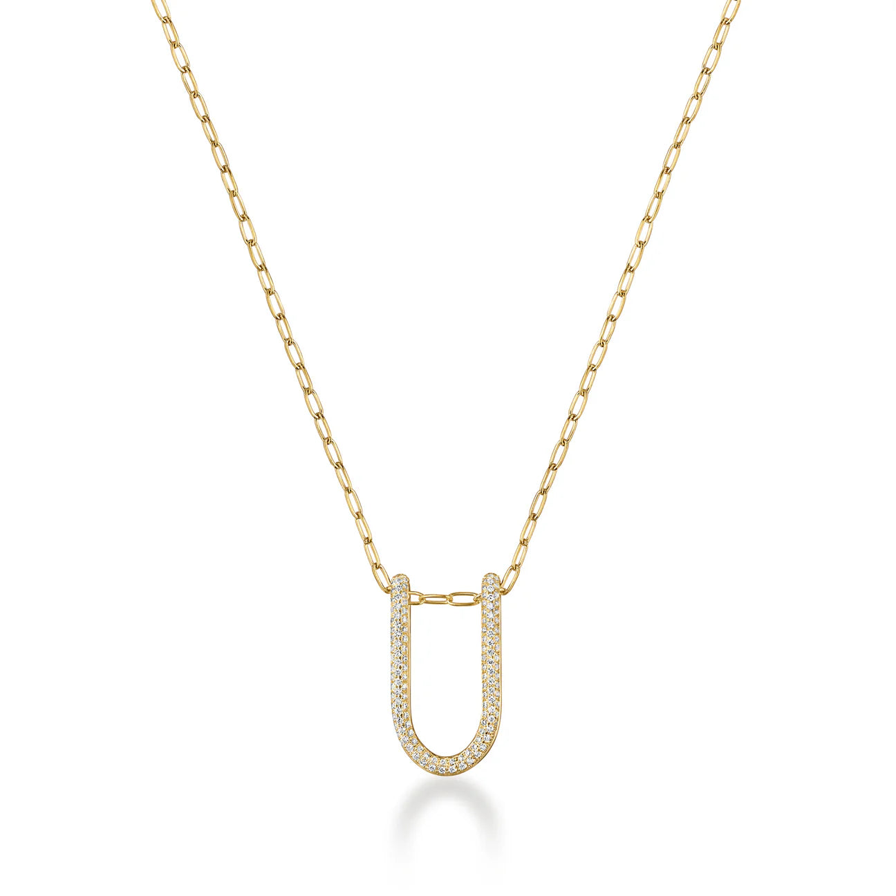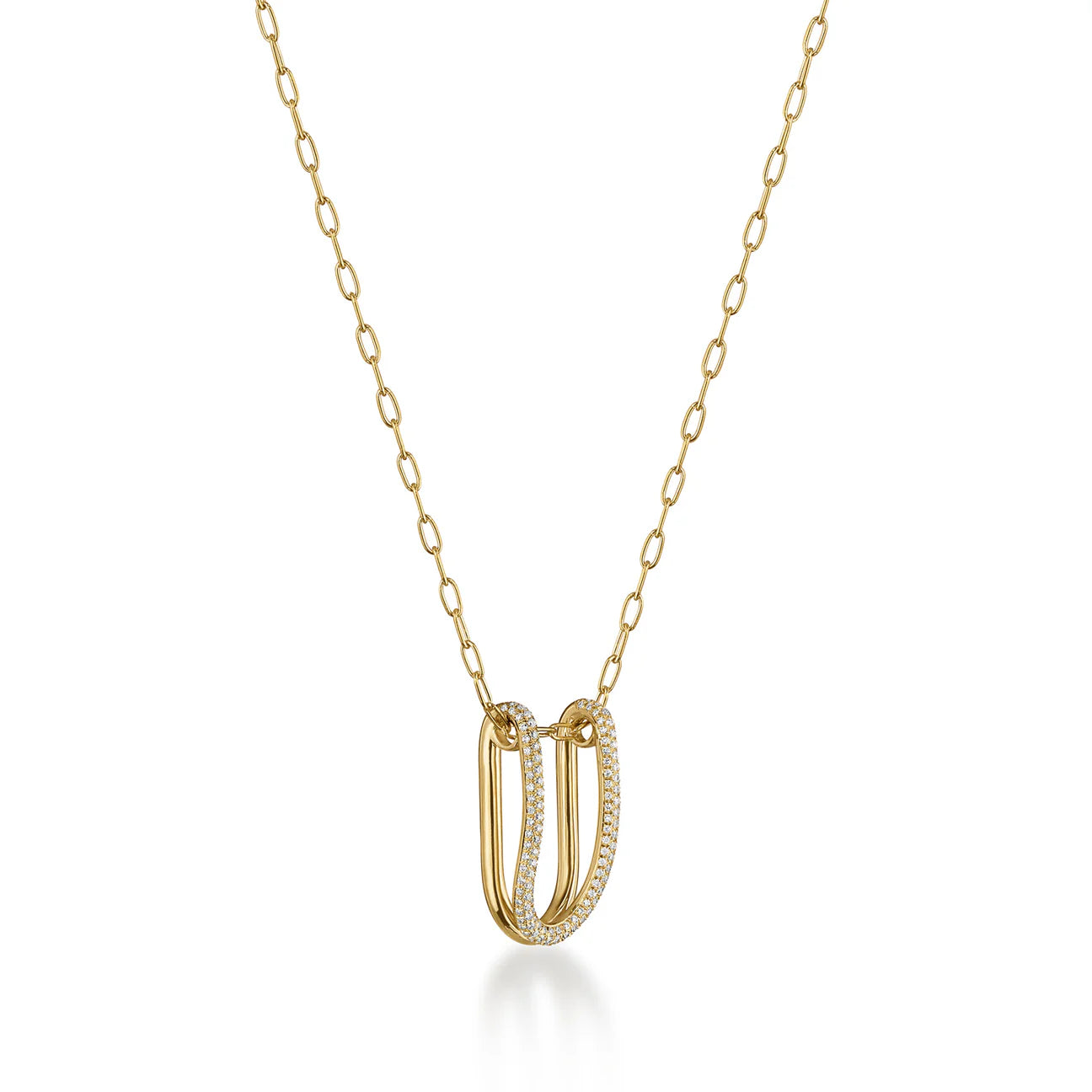 A 22mm small folded link pendant perfect to wear alone or layered. It is meticulously handcrafted with 18K solid gold with 3-rows of natural diamonds pave.