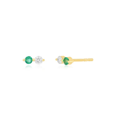 The Diamond & Emerald Double Stud Earring sparkles with diamond and emerald set side by side. Designed with two round cut stones, this chic stud is quite a gem.